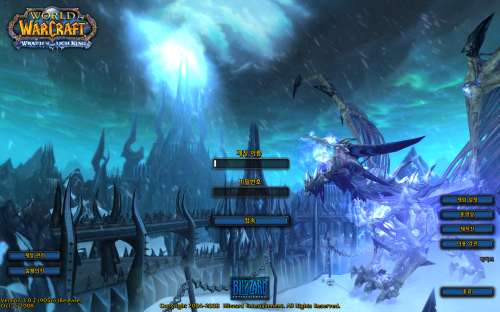 와우 새로운 확장팩이 나왔다. 새로운 버전은 3.0.2 버전으로 파멸의 메아리라는 이름으로 어제 저녁 배포가 되었다. 약 1.3G가 넘는 데이터를 다운받고 실행시켰더니 메인 페이지부터 푸른 이미지로 새롭게 느껴진다. 약관동의 버튼도 푸른색이네. ^^