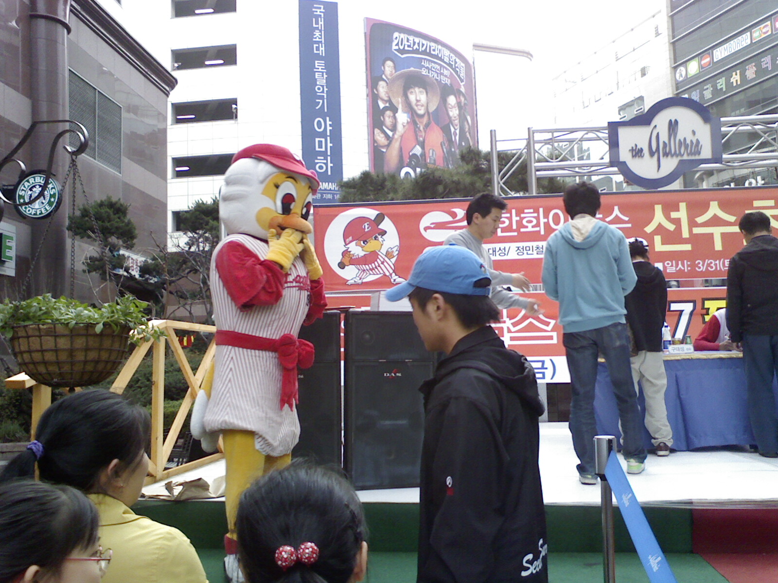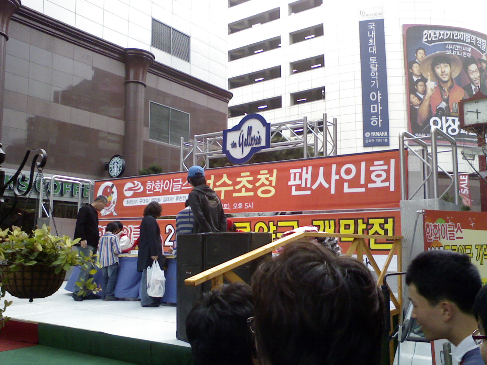 현재 거주하고 있는 곳이 대전인지라 지난주 일요일 갤러리아 백화점 앞에 갔다가 한화 야구팀 팬사인회가 있는 것을 보았다.